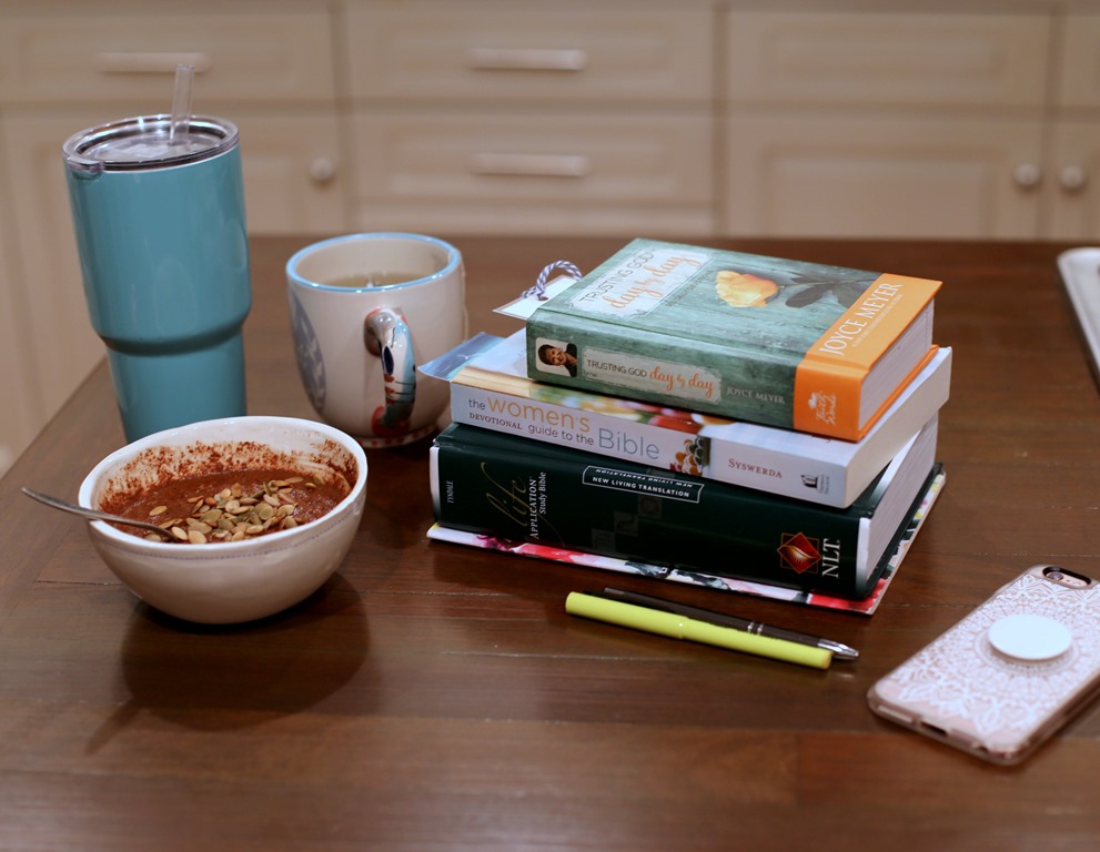Ryan and I were both up just after 5 a.m. yesterday morning and while he headed into our mini home gym to row, I made my way downstairs into the kitchen to fix myself a bowl of triple chocolate protein oatmeal to enjoy along with my daily devotionals. The triple chocolate protein oatmeal never looks good in pics (especially when I make the microwave version) but it always tastes delicious, especially to a chocolate lover like me.