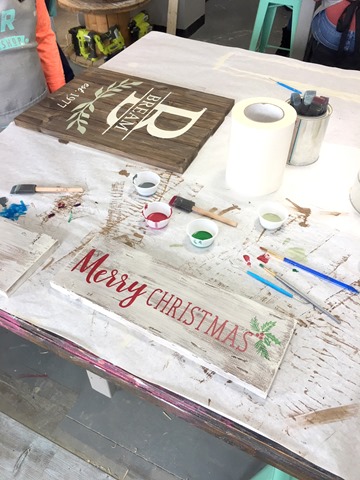 We arrived unsure what to expect. Truthfully we thought we’d be painting and maybe doing a little staining but the projects at AR Workshop were a lot more involved than we realized… and I mean that in a good way! We found ourselves sanding, distressing wood, painting, stenciling and even using power tools! It was awesome and way cooler than we thought!