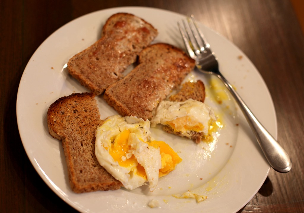 My late start to the day meant a quick breakfast was in order before Chase woke up so I fixed myself two over-easy eggs with toast and remembered to snap a pic when I was in the middle of eating.
