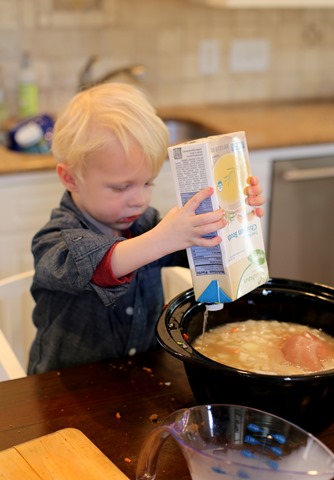 After a quick lunch, we tackled some random household chores (laundry, vacuuming and all that fun stuff) and then Chase helped me throw together our dinner in the crock pot before he went down for his nap.