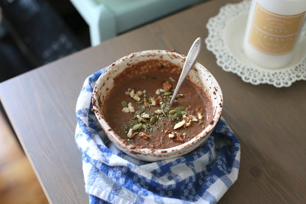 I made the mistake of walking away from the microwave after I prepped a microwavable version of my triple chocolate protein oatmeal so my day began with a bowl of overflowing oats, hence the rather horrific-looking breakfast bowl you see below. Woops!