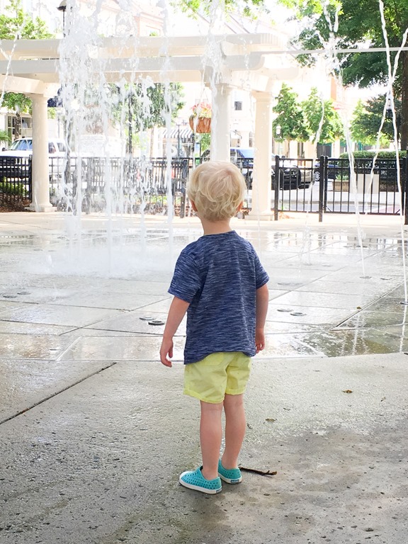 While we were at Birkdale Village, we noticed that the splash pad is officially back in action for the summer and there was a zero percent chance we were going to be able to resist that exciting and oh-so-wet temptation!