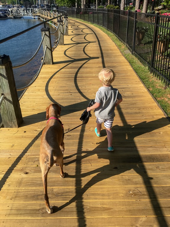 We took Sadie on a walk to a local park, meandered along a boat dock so Chase could look at fish and played at a playground.