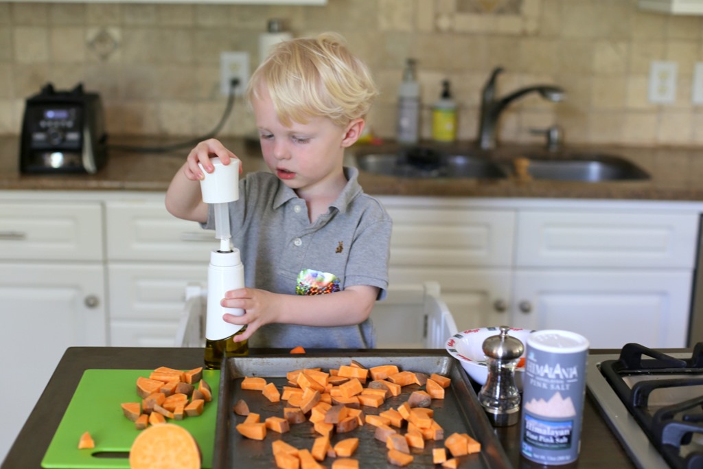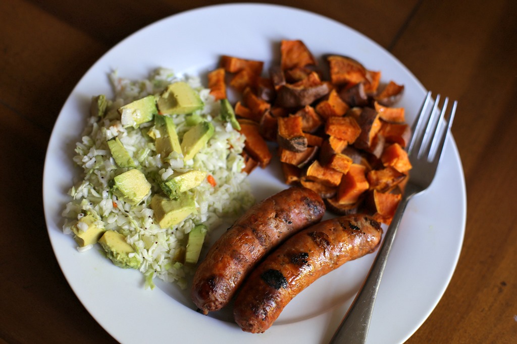 By the time we made it home, we were all more than ready for dinner. Ryan took care of grilling up some chicken sausages outside while I prepped our sides.