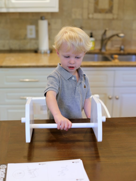Chase was up around 7 a.m. and the two of us spent the morning reading stories, playing around the house and assembling a new stool for Chase to use so he can wash his hands all by himself after he goes to the bathroom.