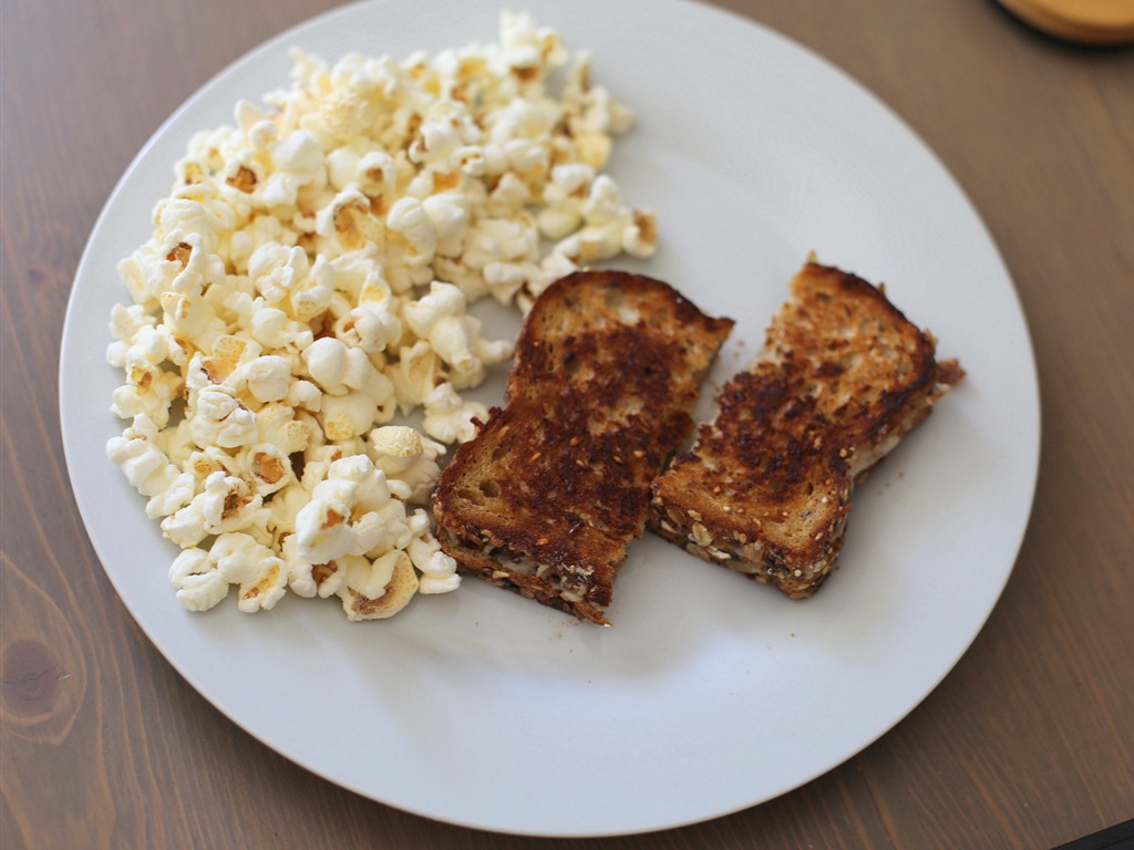 I made myself a grilled cheese and served it with two helpings of white cheddar popcorn for lunch before working at the computer for a bit.