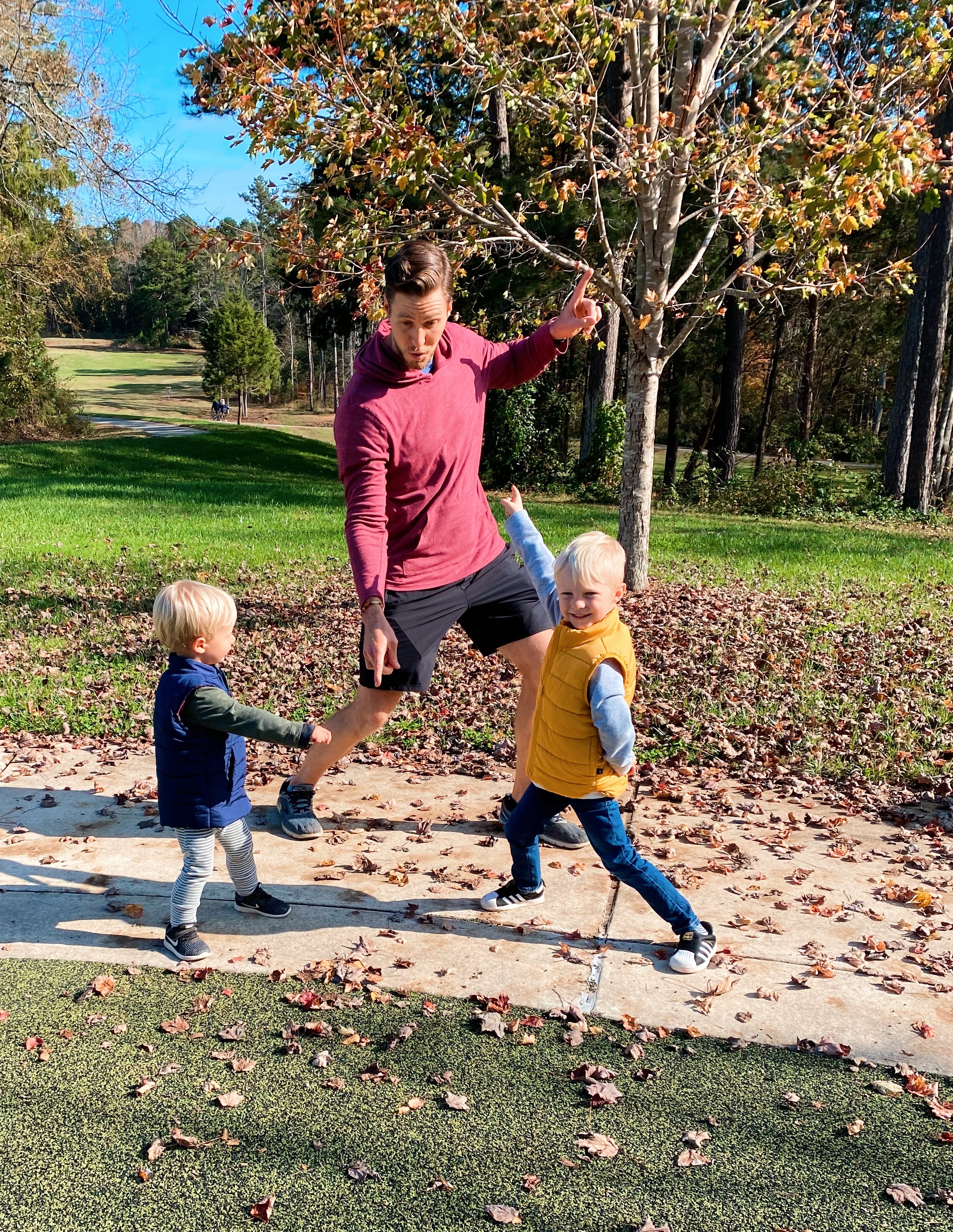 (Chase in Old Navy jeggings and both boys are in GAP puffer vests)