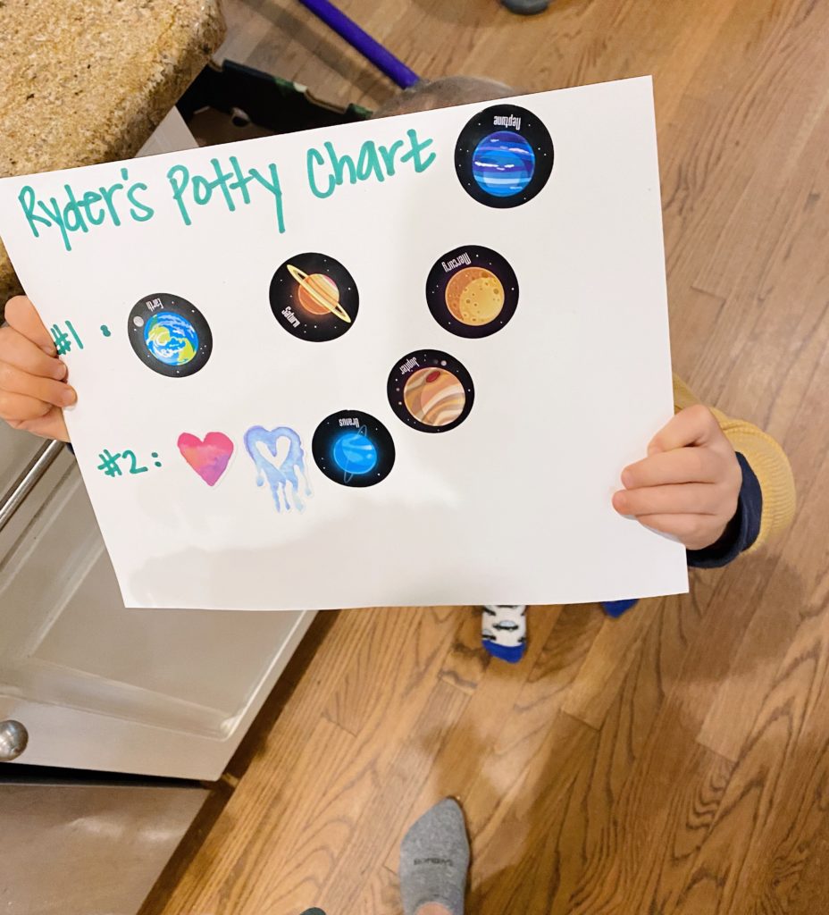 (I clearly lost control of the potty chart and Ryder put stickers everywhere. He just wanted to play with the stickers and was way more motivated by M&Ms and gummy bears than his sticker chart!)