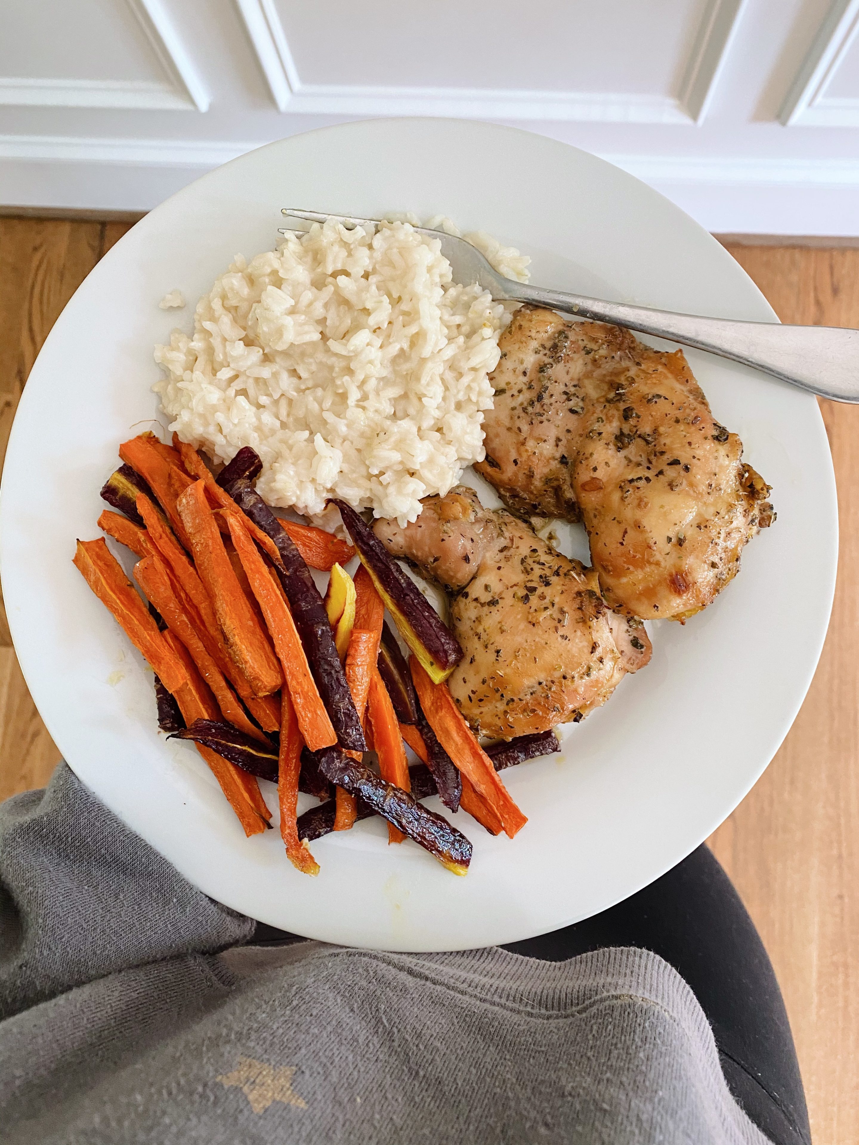 Thursday: Paleo Marinated Chicken Thighs with Roasted Carrots and Buttery Rice