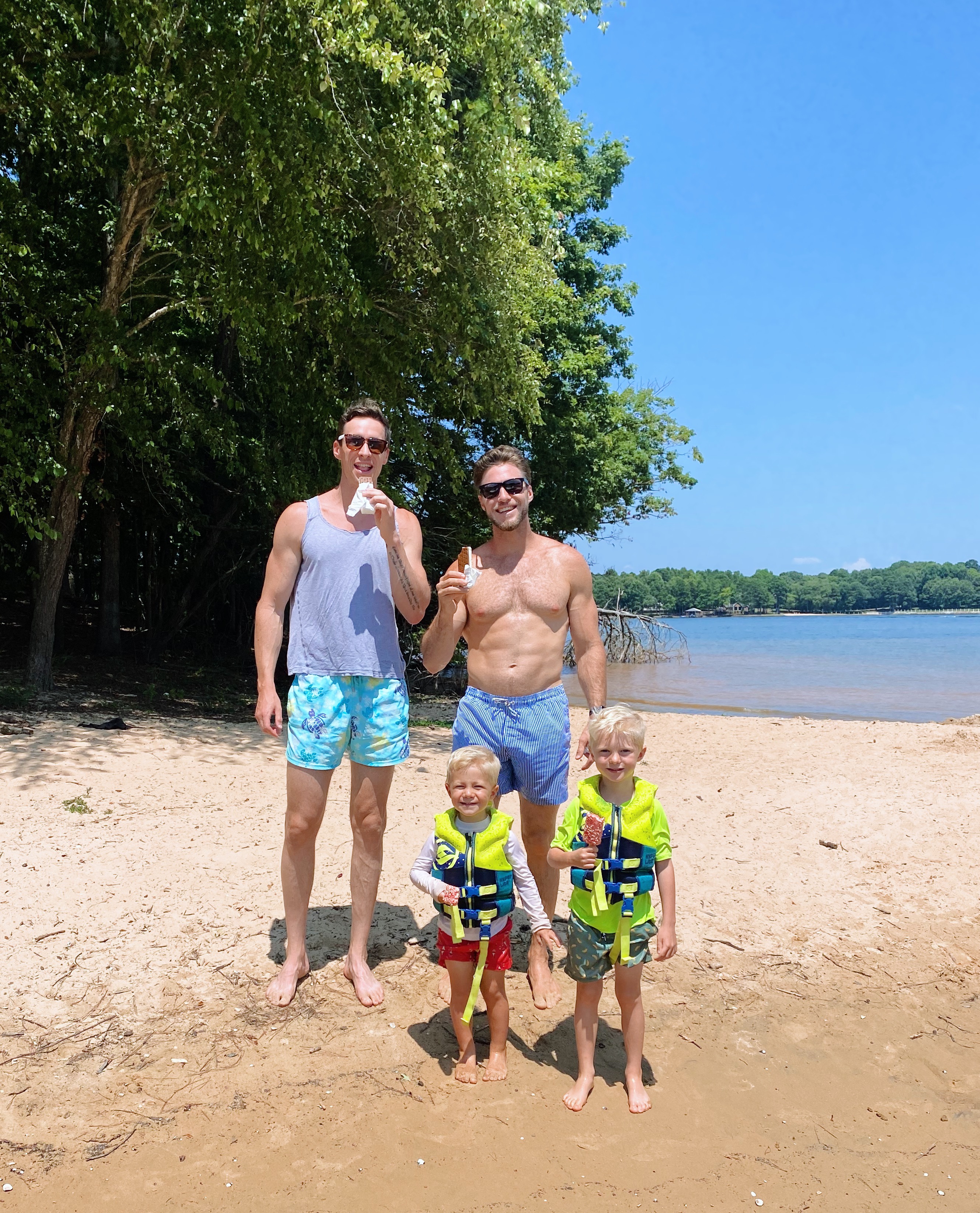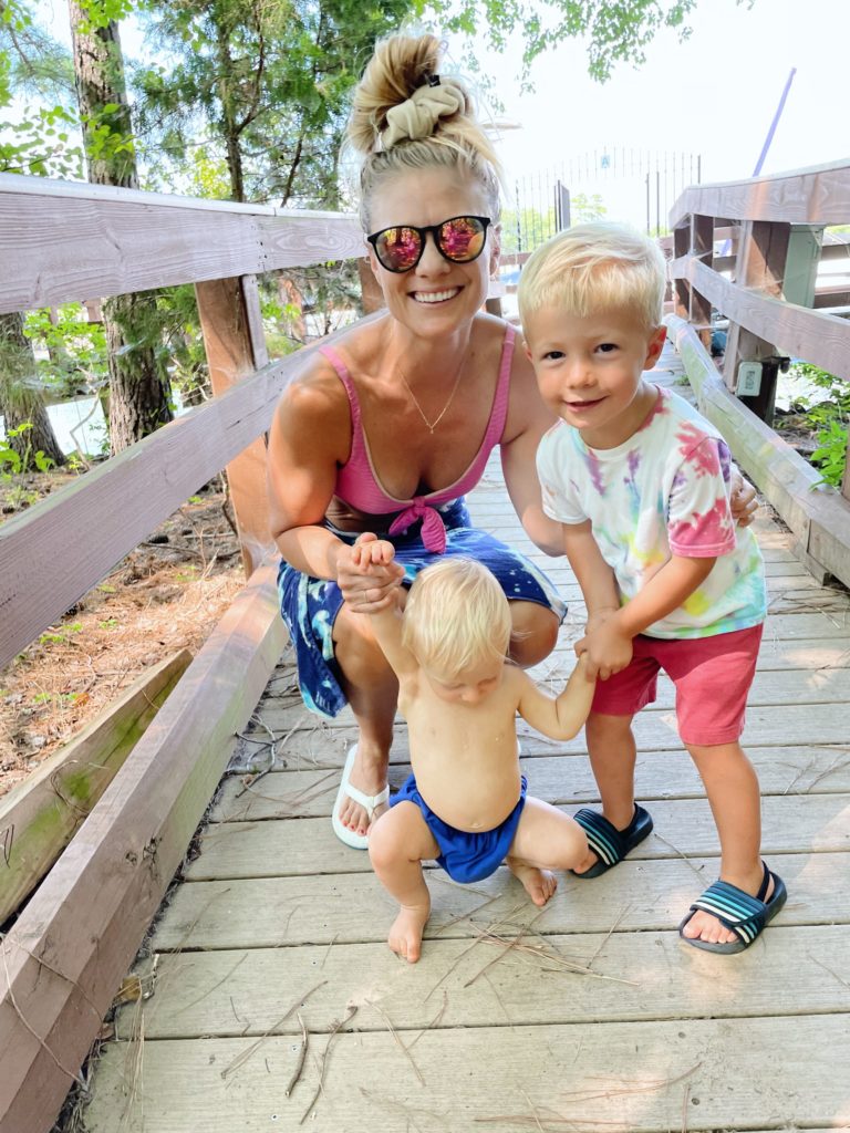 We spent most of the afternoon swimming in the lake and hanging out on a small beach before heading home. Rhett ended up partying through his afternoon nap — I tried, unsuccessfully, to put him down — and he surprised us by being quite the happy camper despite such little sleep. He is sooo into pushing toys around as faux-walkers and is practicing unassisted standing more and more. It’s so fun to see because he gets SO excited by his new skills. Ryan and I joke that Rhett morphed into a new baby when he began crawling because he was a million times happier once he could move around on his own. We’re convinced he’s just dying to keep up with his big brothers!