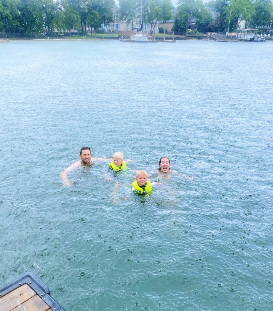 As we were coming in from our boating adventures on Sunday, we were met with some rain but thankfully no thunder or lightning so our crew jumped off the dock where we keep our boat and swam around for an hour or so!