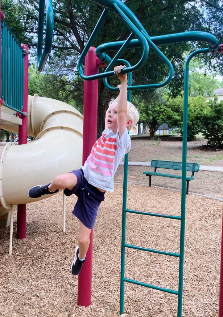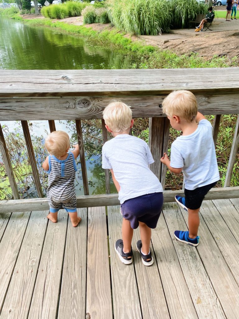 I figured Chase and Ryder would be psyched when I told them our after-school plans involved heading off to a new-to-us park located near a little pond with a walking trail. The boys were way more interested in the turtles and creature-hunting than the playground at first but eventually came back around and played on the monkey bars and slides for a bit.